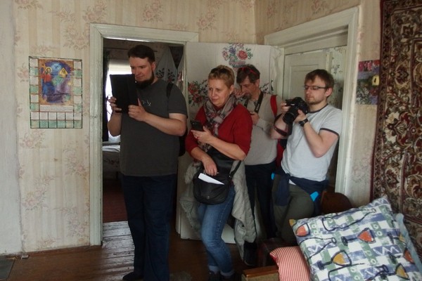 Это было правильное решение — ведомые чутьем и навигаторами, подошли остальные участники группы. Пригласив в микроавтобус, руководитель Гомельского отделения ОО «БАЖ» Анатолий Готовчиц включил дозиметр — самую, пожалуй, значимую деталь путешествия: «Мне его зампред Гомельского облисполкома в чернобыльский 1986 год подарил. Слесарь его фамилия. Умер уже». Дозиметр — не сувенир, а рабочий инструмент: Готовчиц — один из первых журналистов, что ездили в опасную зону за репортажами. Пока на дозиметре норма — 0,10 мкР/ч (допустимые показатели — до 25–30 мкР/ч.) Какие еще цифры увидим во время поездки?