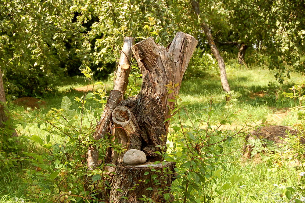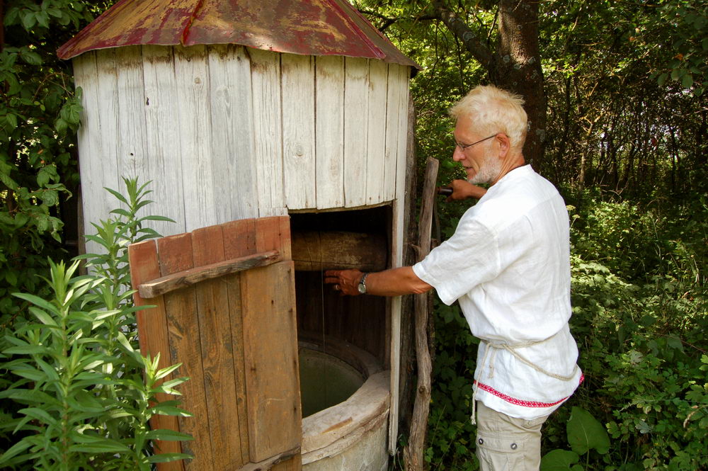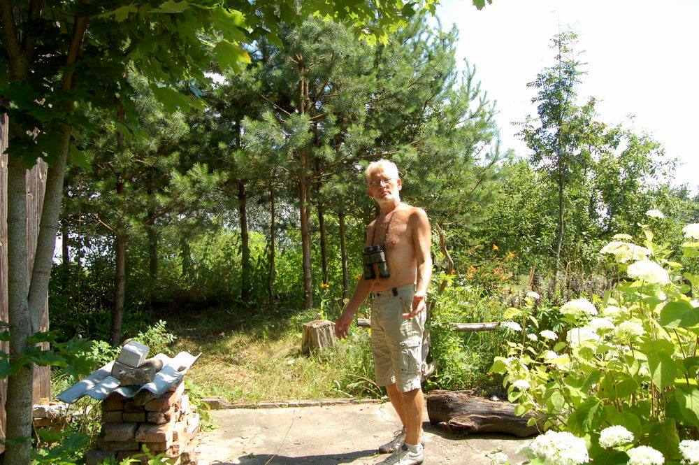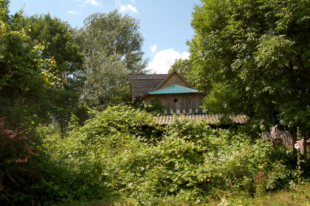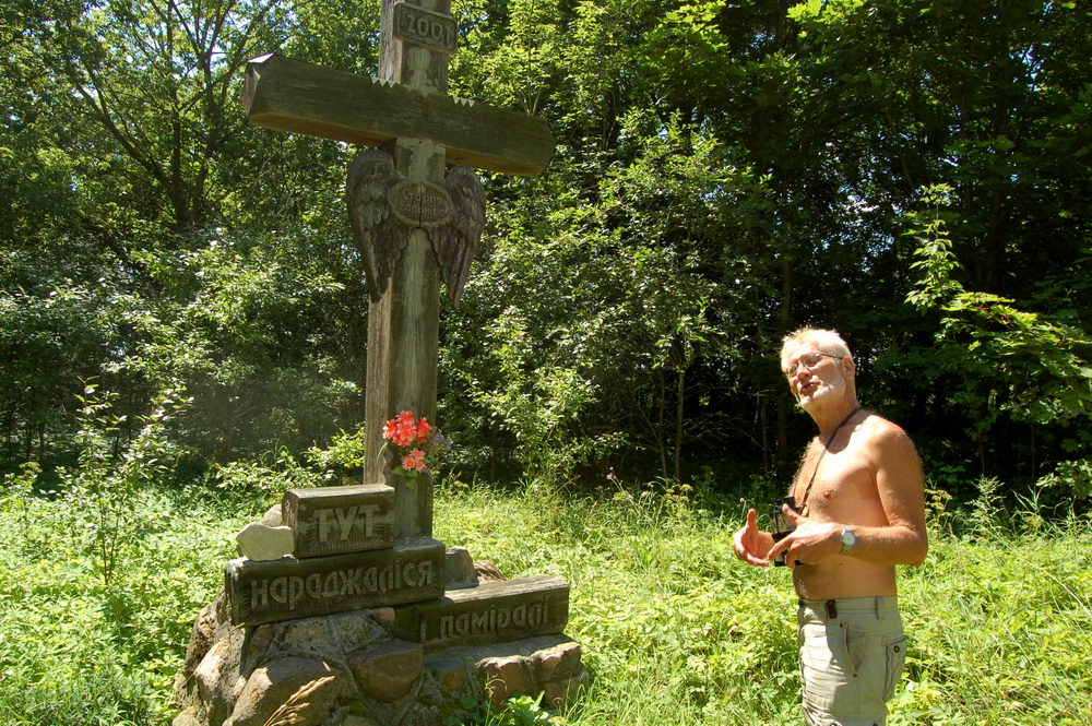 – Тут стаяў дом, у якім я нарадзіўся. Ладны, прыгожы дом. Але колькі год таму мясцовыя бамжы яго спалілі – залезлі ўзімку, грэліся тут, выносілі ўсё, што маглі. А потым і спалілі. Міліцыя нават знайшла вінаватых тады, бо ў доме дзесьці была схаваная гарэлка ў вельмі старых і вельмі адметных бутэльках. І калі рабілі ператрус у аднаго вяскоўца такую бутэльку знайшлі. Так і выйшлі на след вінаватага, якога і асудзілі. Але хаты той канешне ўжо не было і давялося будаваць новую.
