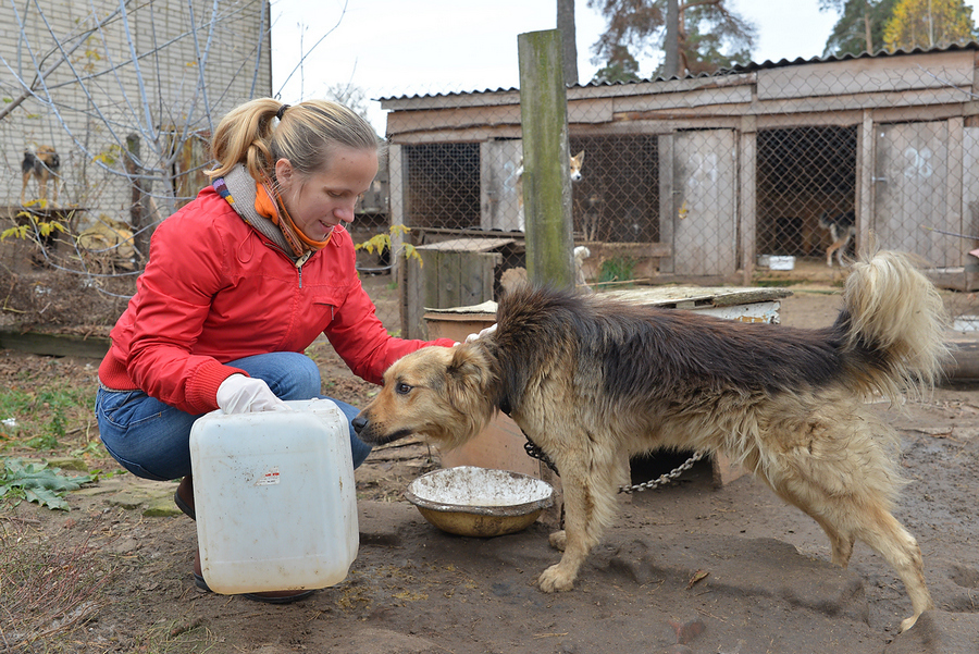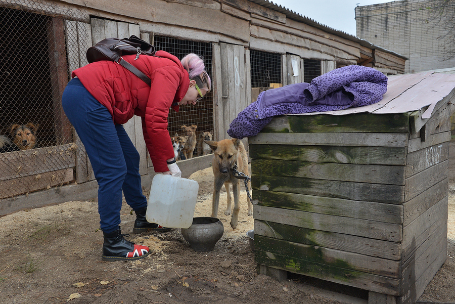 Актывісты-бажаўцы выбраліся ў прытулак раніцай апошняй нядзелі кастрычніка. Журналісты прывезлі з сабой корм для сабак, крупы для гарачага харчавання. Сустракала каманду новых валанцёраў дырэктарка “Дабрачыннасці” Ірына Кавалерава. Нягледзячы на тое, што ў другую змену ёй трэба было ісці на працу, яна зранку прыехала працаваць у прытулак. І так у Ірыны праходзіць амаль кожны дзень. “Дабрачыннасць” і жывёлы, якіх трэба ратаваць ад голаду і холаду, ужо некалькі гадоў неад’емная частка яе жыцця.