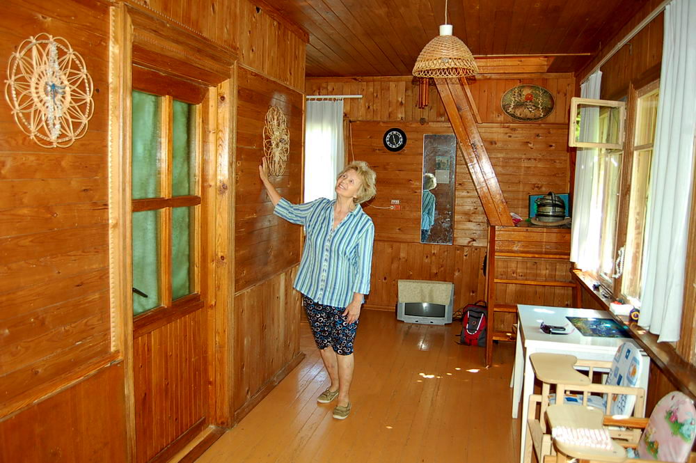 Доўгі час у нас тут ніякага жыцця бадай і не было – з‑за поўнай адсутнасці матэрыяльных магчымасцяў. Але потым мне падказалі, што пад Гомелем ёсць нейкі ваенны гарадок Зябраўка, дзе зносілі “фінскія” дамы, дзе дагэтуль жылі афіцэры, – будынкі вельмі грунтоўныя, пабудаваныя фінамі па фінскай тэхналогіі. Нам дазволілі адзін такі дамок разабраць і перавезці сюды – грандыёзная аперацыя, да якой падключыліся ўсе сваякі. Вось пасля гэтага на нашым участку пачалося сапраўднае жыццё.