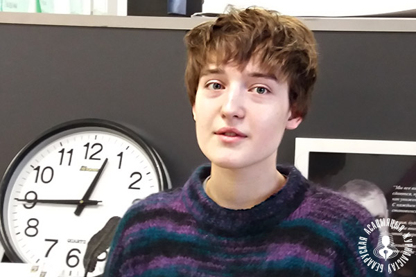Я вучуся на “літаратурнай рабоце” на кафедры “Літаратурнай крытыкі”. Але ніхто не ведае, што гэта ўвогуле значыць, бо ў дыпломе будзе напісана “літаратурны работнік”. Калі паступала, думала, што гэта будзе дыплом крытыка. На практыцы ў раёнцы я займалася вёрсткаю, пісала рэцэнзіі на фільмы. Мяне публікавалі, але там не было чалавека, які мог бы мне сказаць: добрая гэта рэцэнзія ці кепская. Я магу туды паехаць і рабіць гэта, але ж мне трэба вучыцца ў некага!