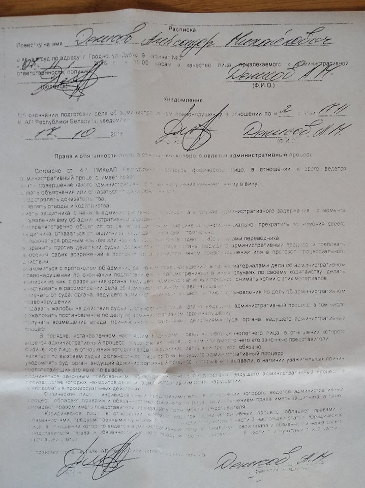Паседжанне адбудзецца ў судзе Кастрычніцкага раёна Гародні, у памяшканні №3. Пачатак паседжання — 10.00.