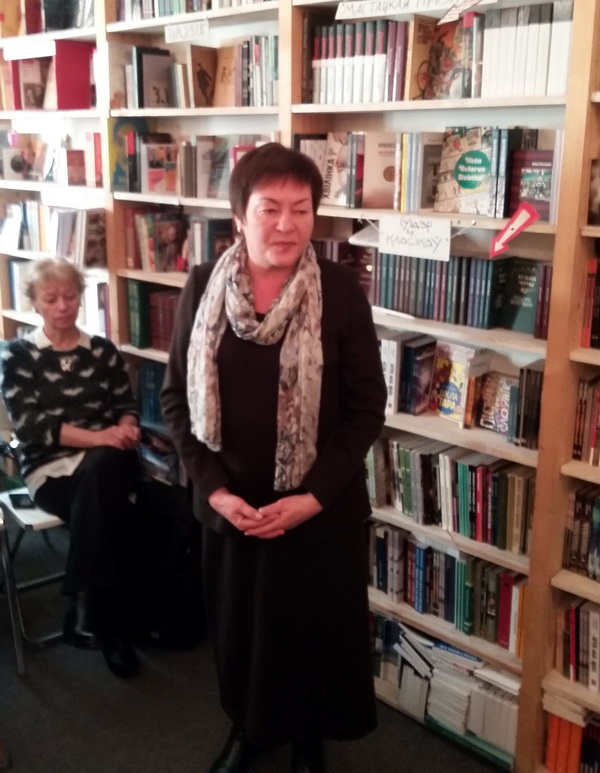 Кветкі Змітру Лукашуку ўручыла былая старшыня БАЖ, сябра праўлення асацыяцыі Жанна Літвіна.