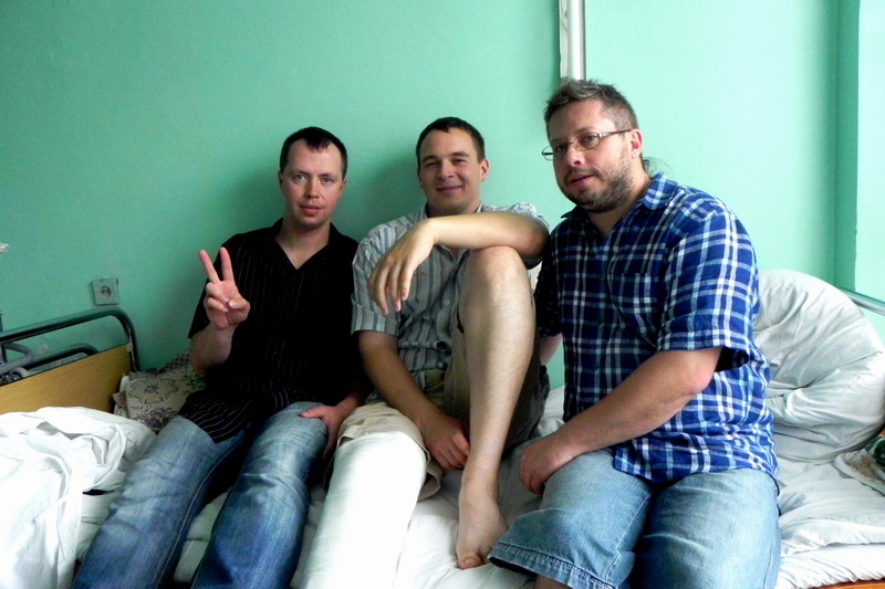 Прадстаўнікі офісу ГА “БАЖ” перадалі хвораму невялікі пачастунак і неабходныя рэчы. Падчас сустрэчы, якая адбывалася ў бальнічнай палаце, журналіст распавёў пра свой побыт у шпіталі і акалічнасці здарэння.