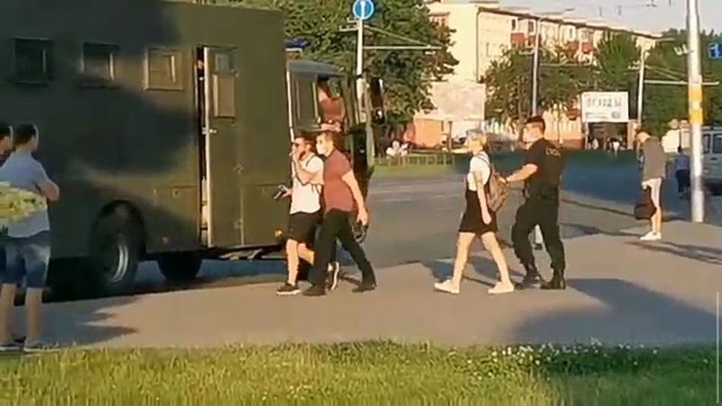 На відэа, якое з’явілася ў чаце тэлеграм-канала “Бабруйск для жыцця” бачна, як Алесю разам з яе мужам Сяржуком Лацінскім, таксама журналістам, супрацоўнікі АМАПу вядуць у аўтазак.