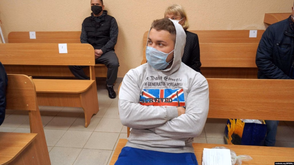 Арцём Сакаў падчас адміністрацыйнага працэса ў Гомелі за месяц да крымінальнай справы, архіўнае фота
