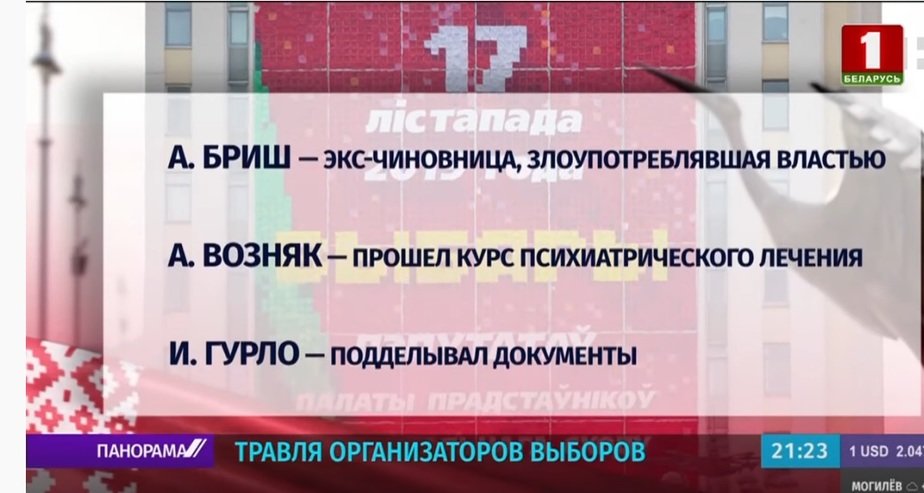 Але быў адзін момант, які асаблівае звяртае на сябе ўвагу: у эфіры з’явіўся спіс кандыдатаў у члены камісій, якіх не дапусцілі да ўдзелу ў выбарах. Частку з іх ў эфіры БТ назвалі «жулікамі», а частку — хворымі.