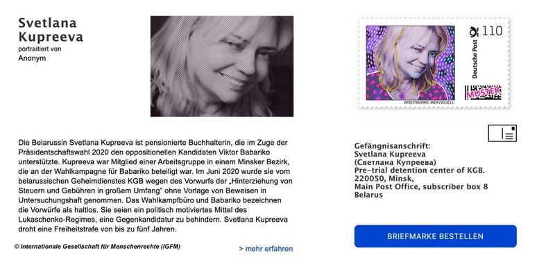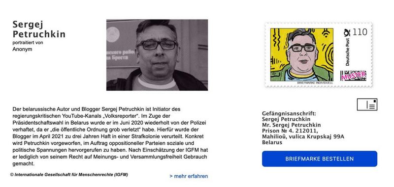 У Нямеччыне надрукавалі серыю паштовых марак з выявамі палітзняволеных. У серыю трапілі два беларусы, паведамляе «DW».
