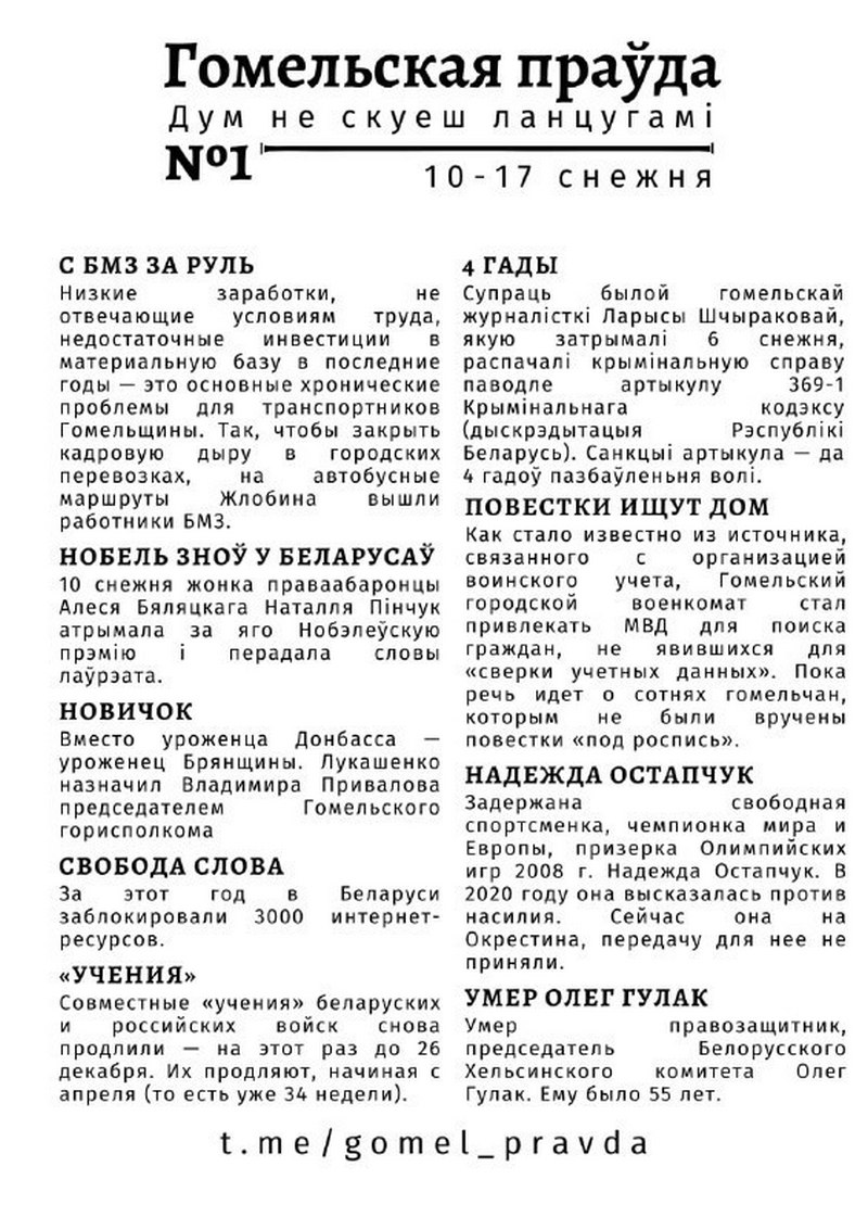 Актывісты стварылі канал, дзе распаўсюджваюць улёткі для раздрукоўкі з асноўнымі навінамі — для тых, хто не чытае іх у інтэрнэце.