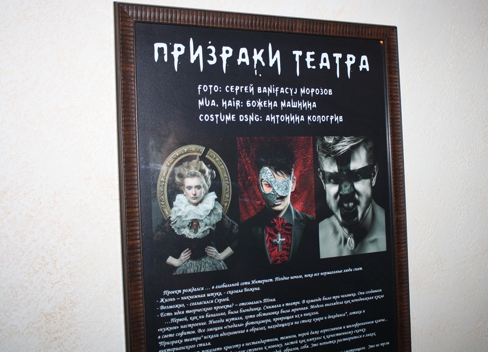 У памяшканні кавярні «Веранда» ў Гродне адбылася прэзентацыя сумеснага праекту трох гродзенцаў пад назвай «Здані тэатру». Фатограф і выкладчык журналістыкі з Гродна Сяргей Марозаў разам з візажыстам Бажэнай Машынай і касцюмерам Антанінай Калагрыў паказалі, якую неабсяжную прастору для творчасці ўяўляе з сябе чалавек.