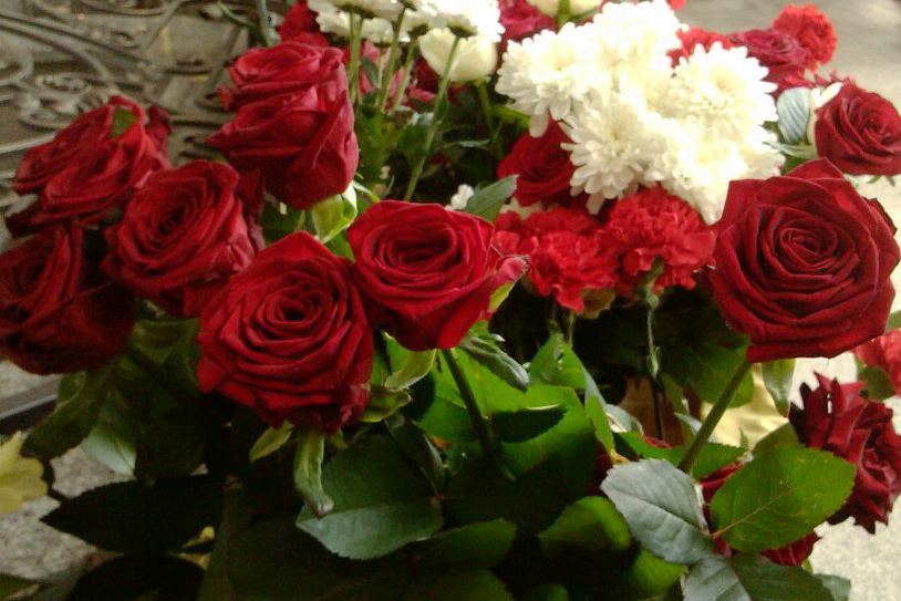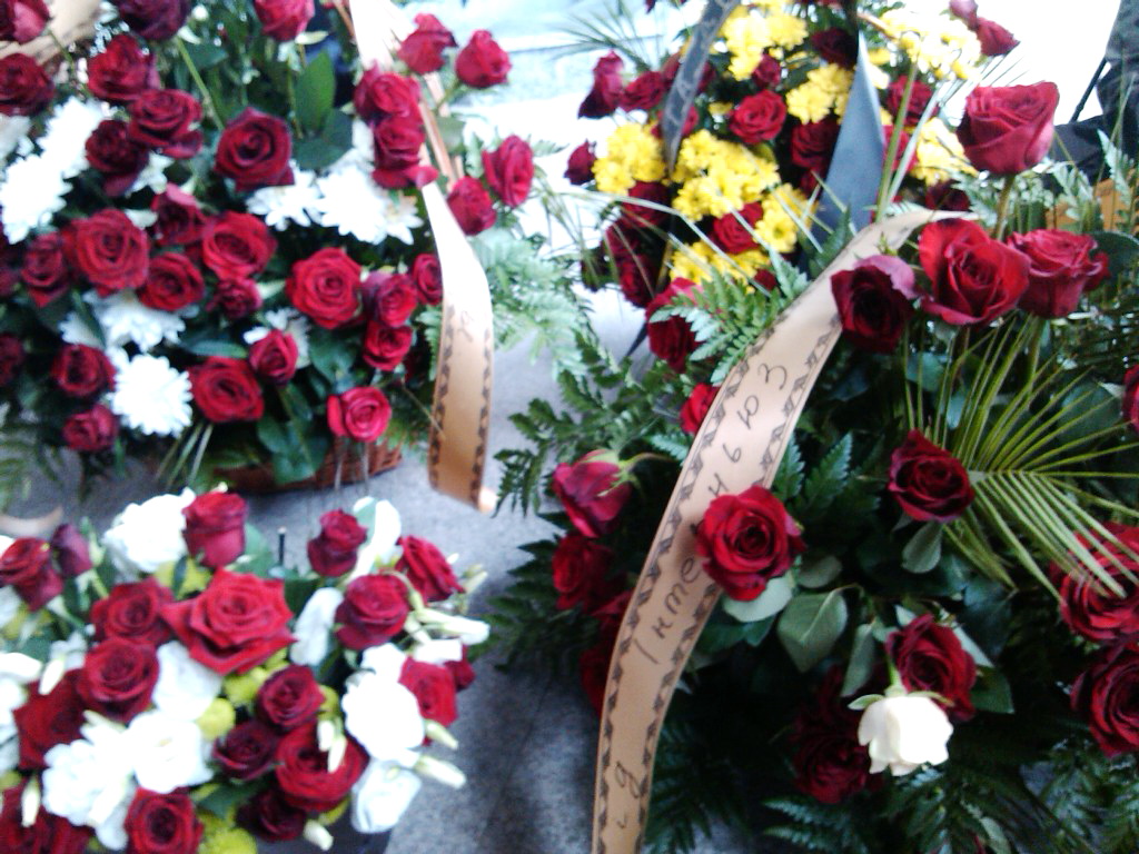 Людзі прынеслі вялікую колькасць кветак.