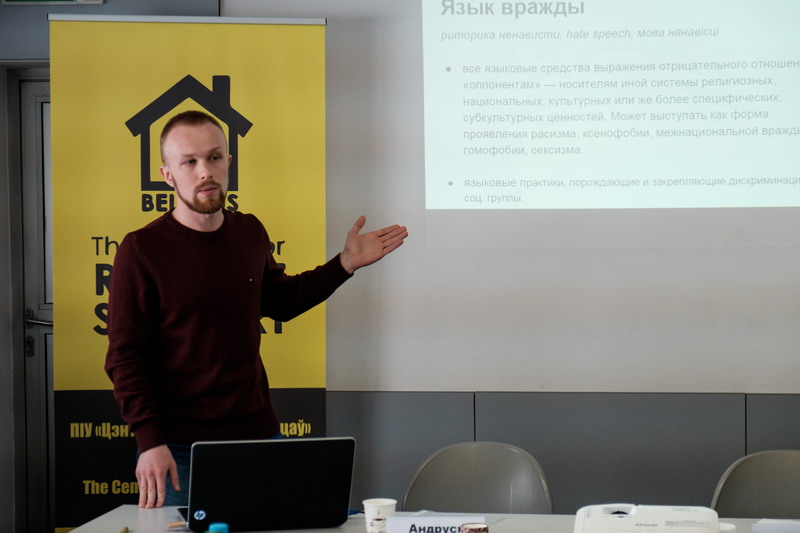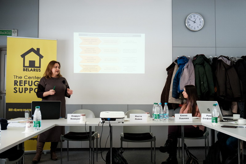 На пачатку сустрэчы пра сітуацыю з мігрантамі, іх праблемы і асноўныя складанасці ў апошнія гады журналістам распавялі намеснік дырэктара “Цэнтра падтрымкі бежанцаў” Андрусь Клікуноў і сузаснавальніца арганізацыі Human Constanta Наста Лойка.