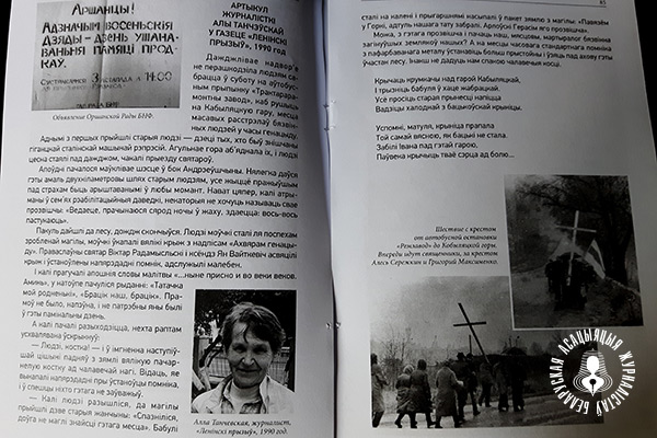Нямала ў кнізе пра найноўшую гісторыю Аршаншчыны і згадак пра асобных журналістаў — Вольгу Шутаву, Аллу Танчэўскую, якія калісьці першымі ўступілі ў ГА “БАЖ”. А таксама здымкаў і вытрымак з іхніх артыкулаў, якія мелі вялікі ўплыў на насельніцтва горада. Асобны нарыс прысвечаны былому рэдактару “Аршанскай газеты” Віктару Пятрушыну, пры якім газета была сапраўдным рупарам грамадскасці.