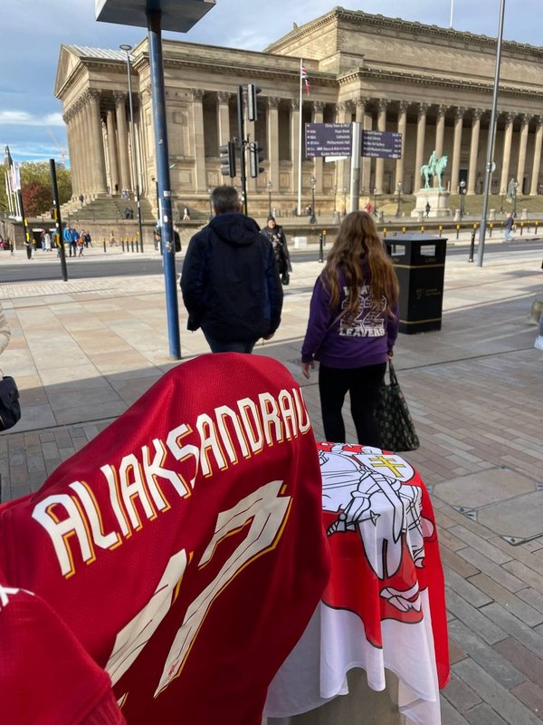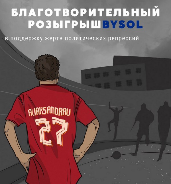 “Ад сёння ў межах дабрачыннай акцыі выстаўлена арыгінальная футболка клуба “Ліверпуль” з прозвішчам Аляксандрава на спіне і “гульнявым” нумарам “27” — дзень ягонага з’яўлення на свет. Адзін неабыякавы беларус замовіў у афіцыйным фан-шопе сертыфікаваную майку і ахвяраваў яе ў фонд BYSOL”, — паведаміў Андрэй Стрыжак, удакладніўшы, што выручаныя грошы пойдуць на падтрымку не толькі сябра-палітвязня, а таксама сем’яў іншых рэпрэсаваных.