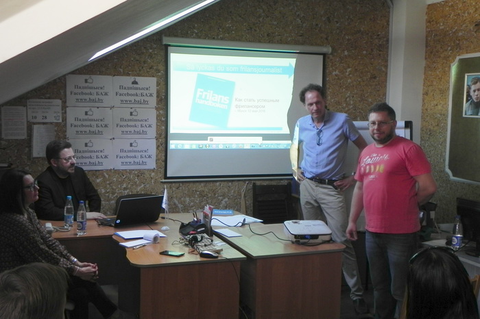 Пасля выступу шведскіх журналістаў беларускія калегі змаглі падзяліцца ўласным досведам працы ў якасці фрылансераў, а таксама задаць шэраг важных пытанняў. У прыватнасці, датычна заканадаўчай базы, аўтарскага права і стасункаў паміж журналістамі і рэдакцыямі.