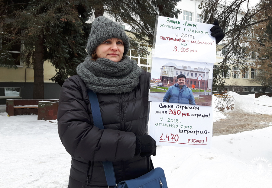 “Менавіта глыбоцкія журналісты апошнім часам патрапляюць пад адміністрацыйны пераслед. Таццяну Смоткіну аштрафавалі летась на 1 265 рублёў, а ў Змітра Лупача сума штрафаў была ў два разы большая. І ўжо сёлета яго аштрафавалі двойчы — 9‑га і 31-га студзеня.