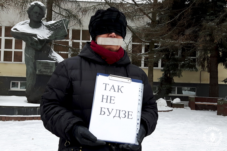 Увасабляючы гэтую метафару, спадарыня Севярынец заклеела сабе рот і завязала вочы. Але ў руках яны трымала таблічку са словамі “Так не будзе!”