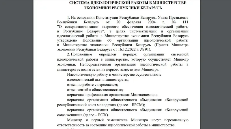 Паглядзіце, колькі структураў займаецца ідэалогіяй ў Мінэканомікі. А хто ж тады працуе? Скрыншот з афіцыйнага сайта міністэрства
