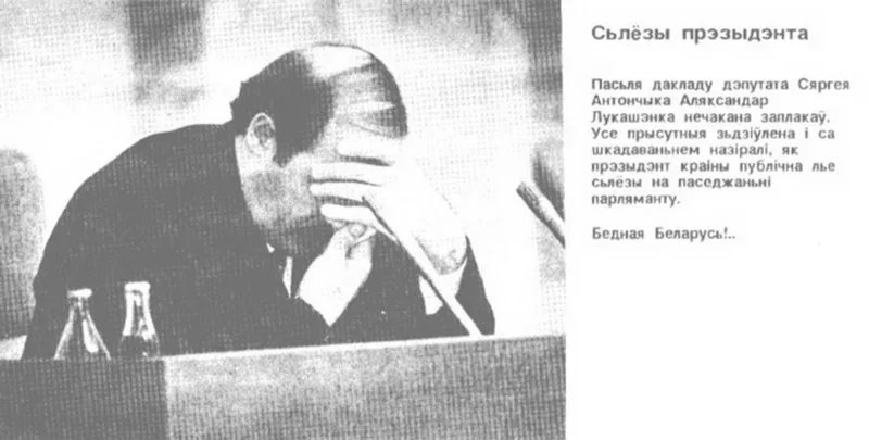 Плач Лукашэнкі ў Вярхоўным Савеце пасля даклада Сяргея Антончыка. Фота: газета Свабода