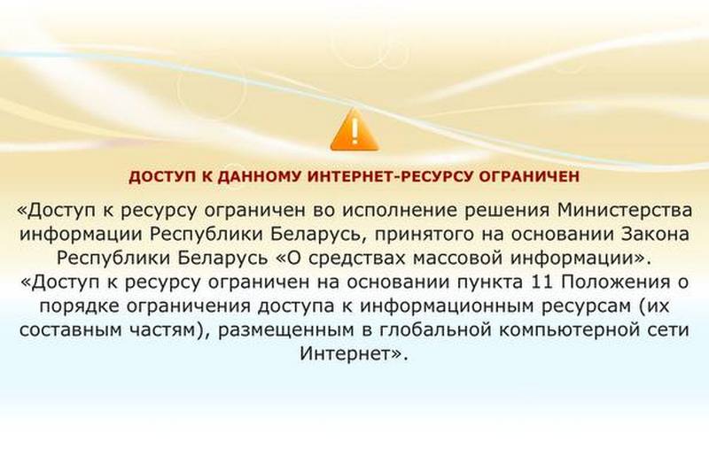 Зараз пры адкрыцці сайта з’яўляецца заглушка: «Доступ да рэсурсу абмежаваны ў сувязі з выкананнем рашэння Міністэрства інфармацыі Рэспублікі Беларусь, прынятым на падставе Закона Рэспублікі Беларусь «Аб сродках масавай інфармацыі». Доступ да рэсурсу абмежаваны на аснове пункта 11 Палажэння аб парадку абмежавання доступу да інфармацыйных рэсурсаў (іх састаўных частак), змешчаных у глабальнай кап’ютарнай сетцы Інтэрнэт».