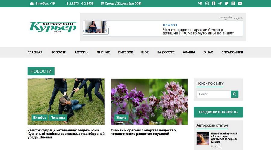 Улады заблякавалі сайты выданьняў «Свободные новости Плюс» і «Витебский курьер»