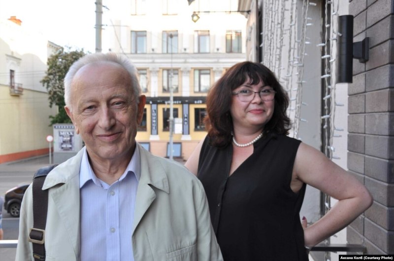 Аксана Колб і аўтар НЧ Дзяніс Івашын. Цяпер абодва за кратамі. Фота DW