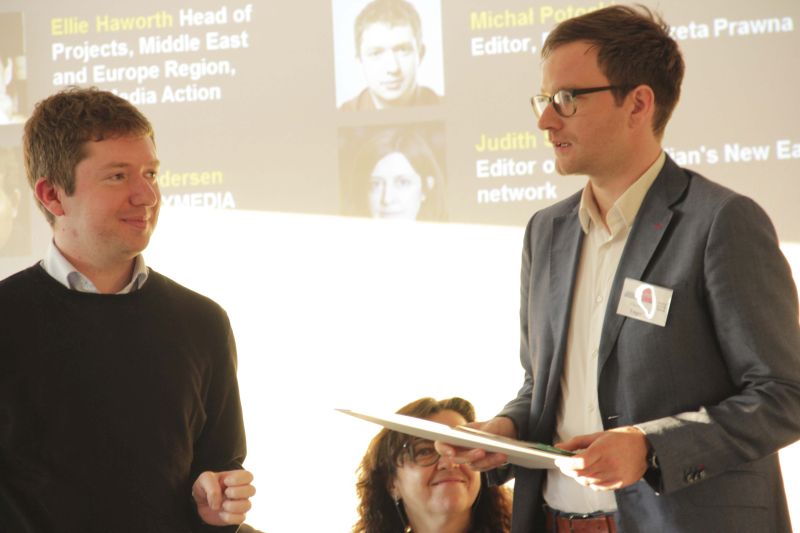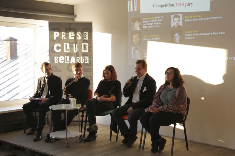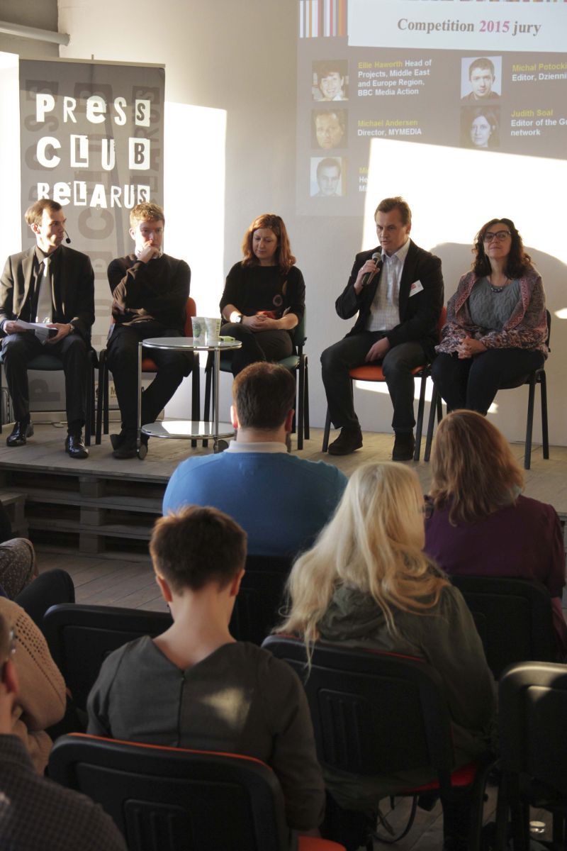 Прызы ўручалі сябры міжнароднага журы, сярод якіх Джудзіт Соал — рэдактарка праекта “New East Network” брытанскай газеты “The Guardian”, прысвечанага краінам былога СССР, Міхал Патоцкі з польскага тыднёвіка “Dziennik Gazeta Prawna” і Міхась Янчук, намеснік старшыні ГА “БАЖ”.