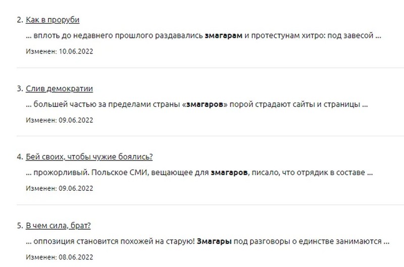 Но самое распространенное нынче в государственных медиа определение любого активиста, политика или просто несогласного — «змагар». Вообще змагар — это по-белорусски борец. Но в государственных медиа это совершенно нейтральное слово используется исключительно для обозначения оппозиционеров. А вообще тенденция использования белорусских слов в русскоязычной пропаганде (а белорусскоязычной пропаганды, собственно, и не существует) появилась благодаря Александру Лукашенко. Долгие годы он называл своих оппонентов «свядомымі». Свядомы (по-русски — сознательный) — такое же нейтральное слово, как и «змагар».