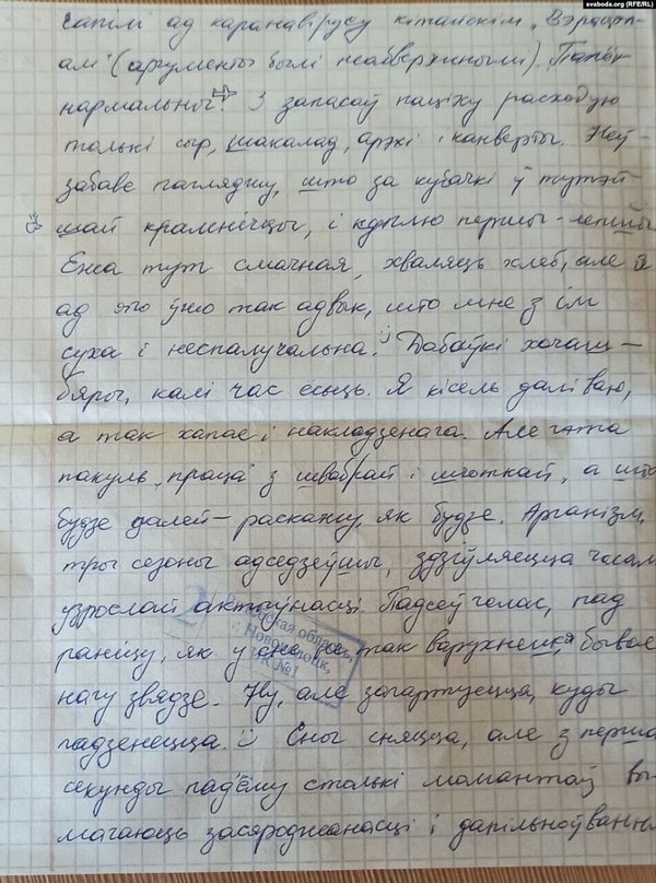 Умовы ў наваполацкай калёніі лепшыя за магілёўскую турму. Ежа даволі смачная, асабліва нахвальваюць зьняволеныя хлеб.