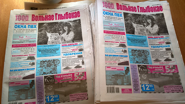 Нагадаем, напачаткугазета “Вольнае Глыбокае”былазарэгістраваная як орган Глыбоцкай суполкі партыі БНФ. З цягам часу ператварылася ў прыватнае інфармацыйна-рэкламнае ўнітарнае прадпрыемства “Дарога на Вільню плюс”. Распаўсюджваецца газета ў асноўным на кірмашах і ў прыватных крамах. Наклад газеты складае 1200 паасобнікаў.