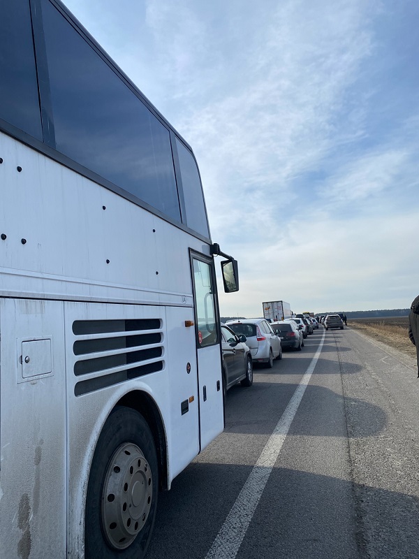27 февраля около пяти часов вечера по Киеву мы выехали из Львова в сторону КПП «Смольница—Коростенко» на польской границе. На выезде из города люди строили баррикады и раскидывали по дороге ежи. У города Хыров начиналась пробка — сначала машину с польскими номерами пропустили по встречкем, но за несколько километров до границы мы встали в общую очередь. Через несколько часов мы уехали, подсчитав, что рискуем провести в этой очереди двое суток.