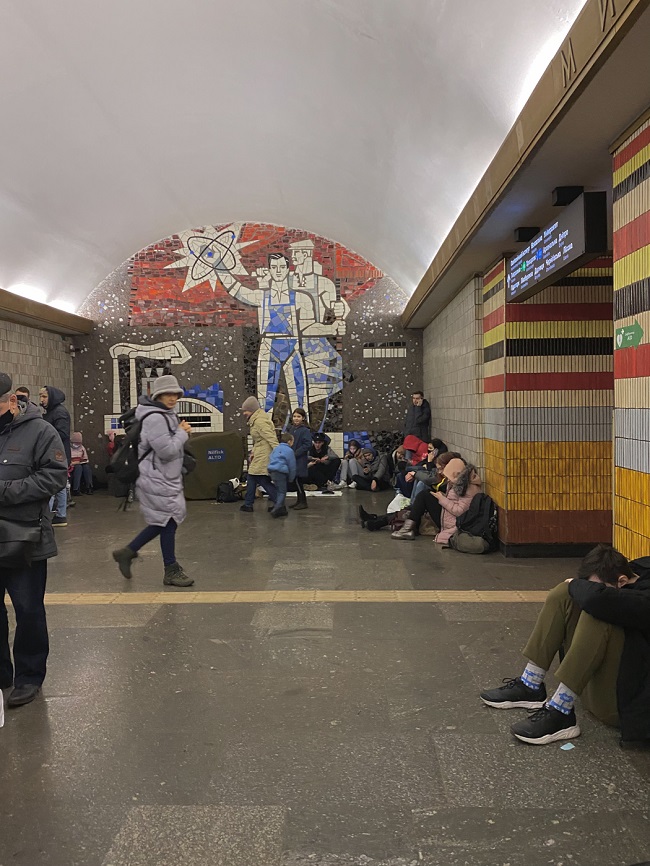 24 февраля, около 13:00. Люди на станции метро «Шулявская». Фото: Медиазона