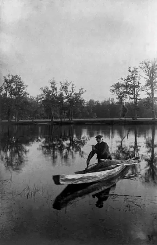 Рыбак на рэчке Пціч каля хутара Залзіша, Бабруйская акруга. Рэпрадукцыі фатаграфіі з альбома.