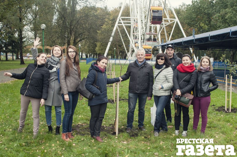 В пятницу 6 октября сотрудники редакции «Брестской газеты» высадили в парке культуры и отдыха фруктовые деревья. Это яблони, груши, сливы, черешни и грецкий орех. Все саженцы выращены в одном из брестских питомников. Редакционный сад разместился в одном из самых посещаемых уголков парка — рядом с 40-метровым колесом обозрения.