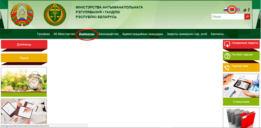 А вось і станоўчыя прыклады. Мы выбралі найбольш сімпатычныя, на наш погляд, беларускамоўныя старонкі дзяржаўных органаў.