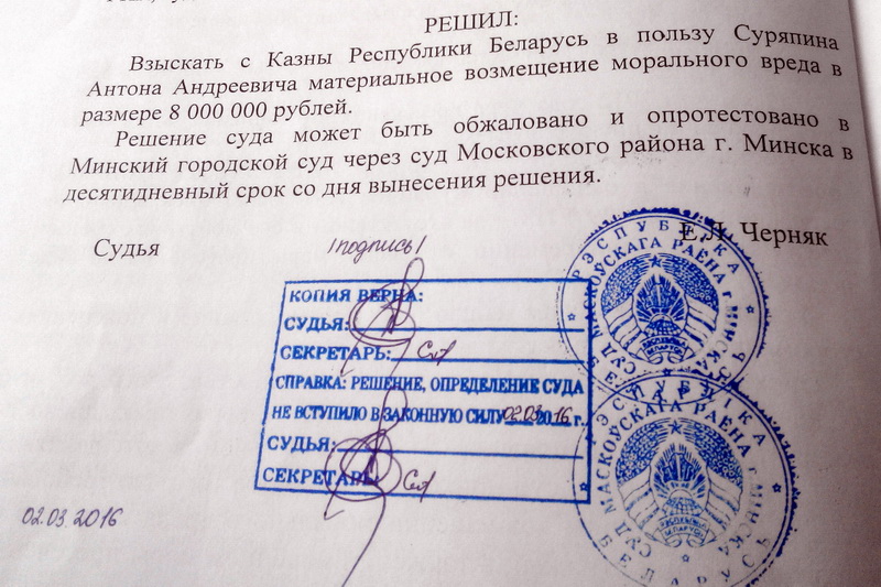 Другая перамога — гэта, канешне ж, справа Пальчыса. Хоць там ГА “БАЖ” непасрэдна і не ўдзельнічала ў працэсе, шэраг прававых дзеянняў у супрацоўніцтве з абаронцамі па гэтай справе рабіўся намі. І гэта наш унёсак у справу, якая скончылася адносна паспяхова — вызваленнем з‑пад варты ў залі суда.