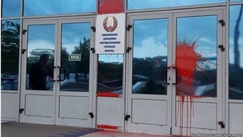 Нехта пад нікнэймам Piter Pan апублікаваў на Youtube відэа, у якім невядомыя ў масках закідваюць будынак Белтэлерадыёкампаніі фарбай, сьляды якой былі знойдзеныя ранкам 9 чэрвеня.