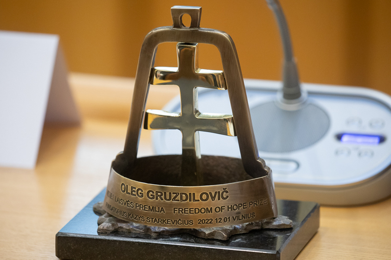 Падчас Форуму вольнай журналістыкі, які адбыўся 1 снежня ў Сейме Літвы, была ўручаная прэмія “Надзея Свабоды” рэпарцёру Алегу Груздзіловічу, які нядаўна выйшаў на волю і пакінуў Беларусь.