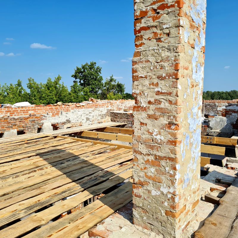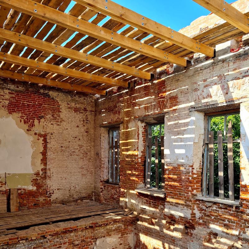 — Напачатку верасня, нарэшце (ну нарэшце!), мы пачнем накрываць дахам правае крыло. Самае складанае было — аднавіць верх сцен. Па-першае, туды не было доступу, і давялося рабіць чардачнае перакрыццё.