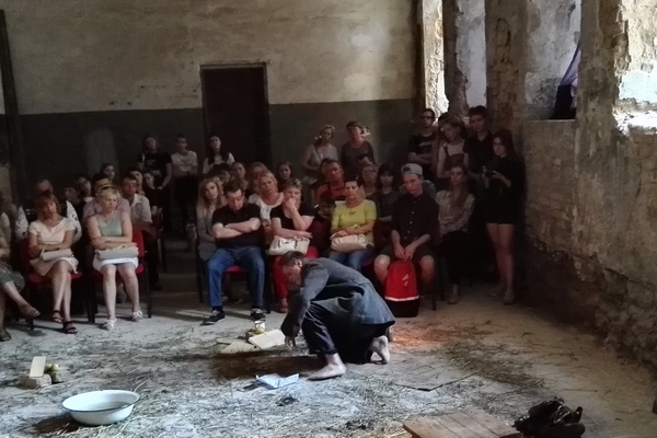 “Гэты перформанс мы стварылі стыхійна. Аўдыёдзеннік вязня гроденскага гета я запісала 4 гады таму Запісваўся ён з мэтаю стварэння музея “маліны”. «Маліна” — так называліся таемныя месцы, дзе хаваліся вязні гета. Музей планавалі зрабіць у гродзенскай сінагозе, аднак па розных прычынах ён так і не быў створаны. Мы да сёння не ведаем, хто аўтар гэтага дзенніка. Я вельмі радая, што ролю вязня грае не прафесійны артыст, а журналіст” — гаворыць рэжысёрка Ганна Суліма. — Руслан проста жыве, “абжывае” прастору, якую мы паспрабавалі стварыць для яго з рознымі старымі прадметамі. Гучыць аўдыёзапіс дзённіка, а Руслан усё робіць моўчкі.”