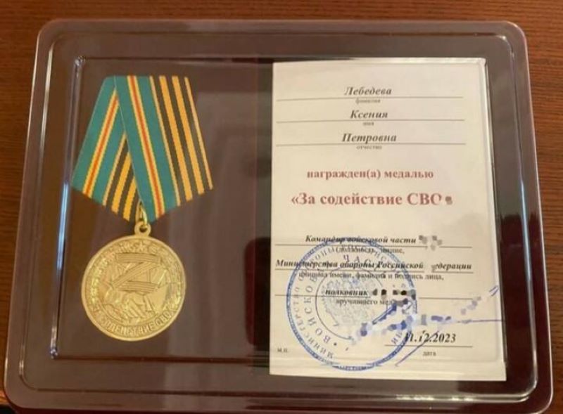 Журналистка БТ Ксения Лебедева похвасталась медалью «За содействие СВО»
