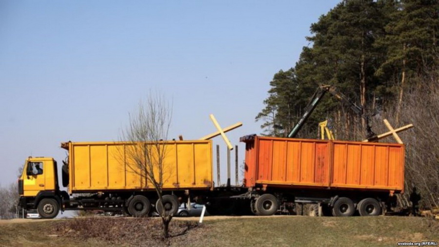 4 красавіка ў месцы памяці ахвяраў сталінскіх рэпрэсій у Курапатах супрацоўнікі Бараўлянскага спецлязгасу пачалі дэмантаж крыжоў, усталяваных прадстаўнікамі грамадскасці.
