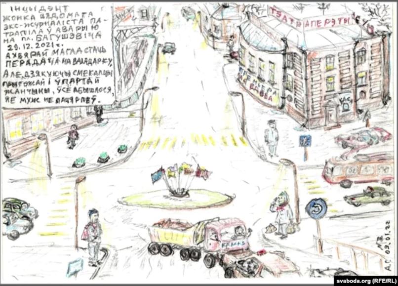 16 ліпеня 2021 году сілавікі прыбылі ў менскі офіс Радыё Свабода, вырвалі камэры відэаназіраньня на паверсе і выламалі трое дзьвярэй у офісе. Сканфіскавалі тэхніку. Таксама зь ператрусам прыйшлі да Алега Грузьдзіловіча, якога пазалетась пазбавілі акрэдытацыі МЗС Беларусі. Яго затрымалі і пакаралі арыштам на 10 дзён. Ніякіх абвінавачаньняў тады ня выставілі.