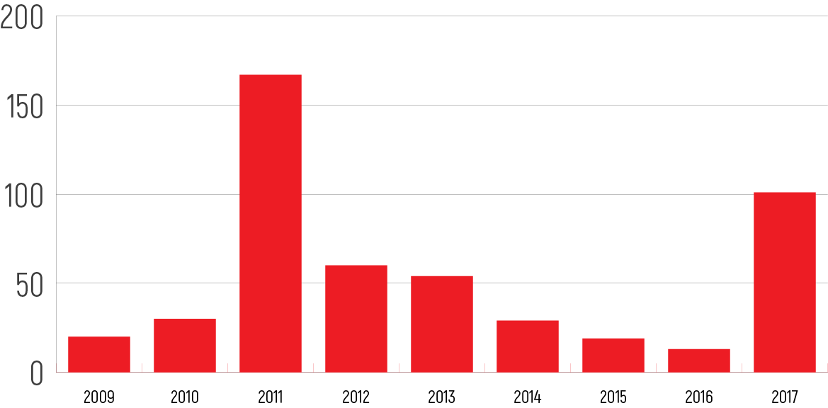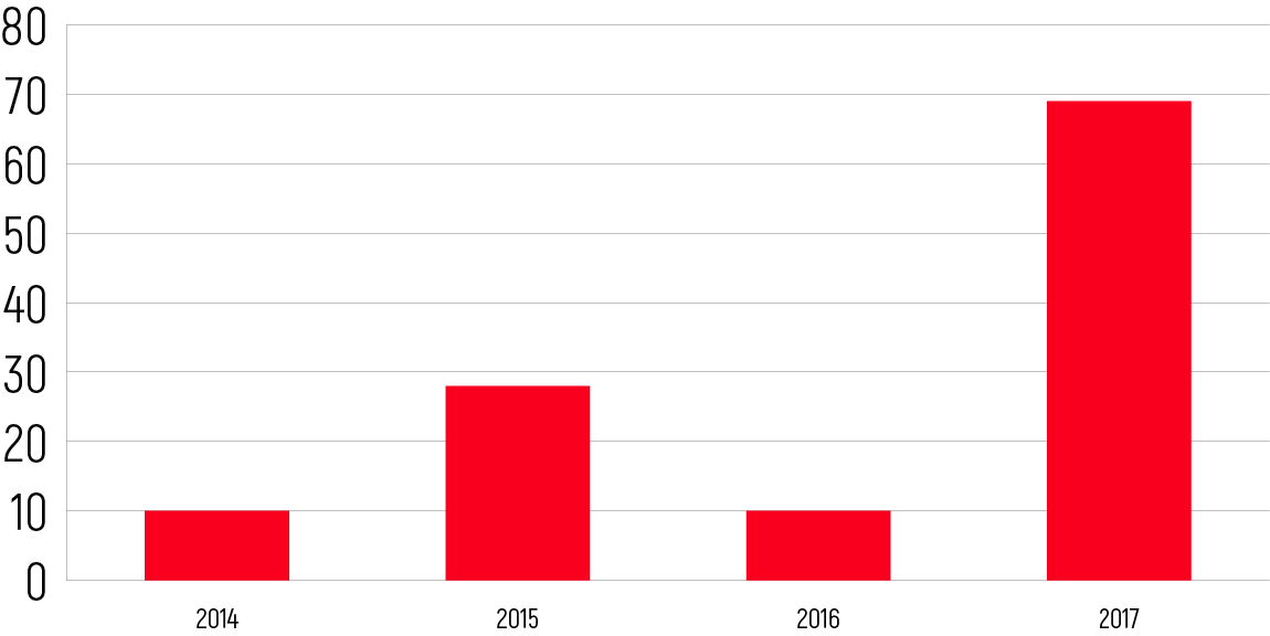 Prosecution of journalists for cooperation with foreign mass media without press credentials resumed after almost a one-year break in March 2017. It continued after the end of protest actions in the country. Consequently, the number of fines, imposed on freelance journalists, drastically increased in 2017 — 69 cases vs. 10 cases in 2016. It was more than during three previous years in the aggregate. The total number of fines exceeded EUR 25,000 in 2017.