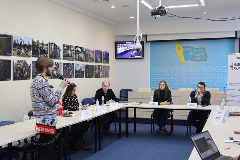 The Ukrainian side at the meeting was represented by the NUJU chairman Serhii Tamilenko, famous Ukrainian political analyst Yevhen Mahda, and journalists and media editors. Daria Chultsova and Ales Minau, both former political prisoners and journalists, as well as deputy chairman of the Belarusian Association of Journalists Barys Haretski, came to speak from the Belarusian side.