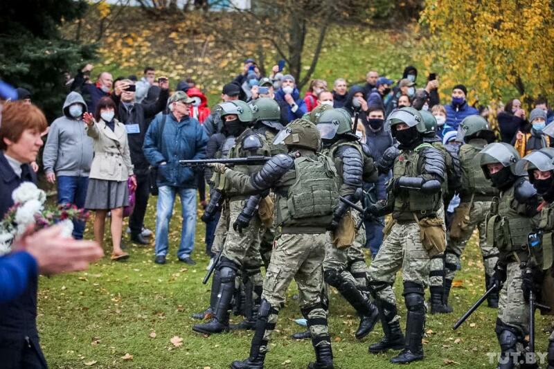 On November 1, protesters marched to Kurapaty, where victims of Stalinist repression were executed and buried.  On the way to Kurapaty, the riot police dispersed the crowd many times. Many were arrested, journalists among them.
