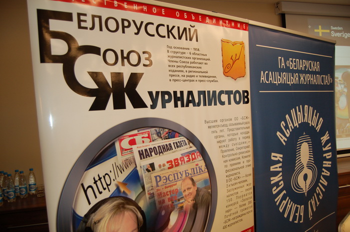 The two-day conference gathered representatives of the Belarusian Association of Journalists, the Belarusian Union of Journalists, the FOJO Media Institute, as well as experts from Sweden, Ukraine, Georgia, Kazakhstan, Tajikistan, Armenia, and Russia. Also, representatives of the Belarusian Minister of Information and President’s Administration were invited.