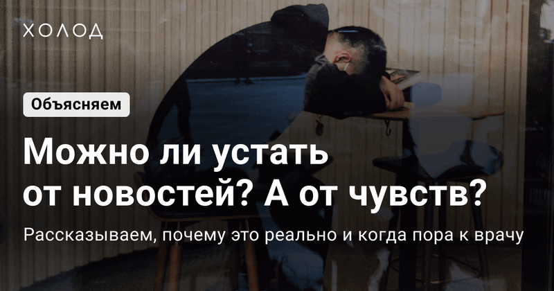 Каждому из нас приходится уставать — временами мы чувствуем себя практически без сил. «Холод» разбирается, нужно ли при этом идти к врачу, можно ли устать от новостей, и отвечает на другие важные вопросы.