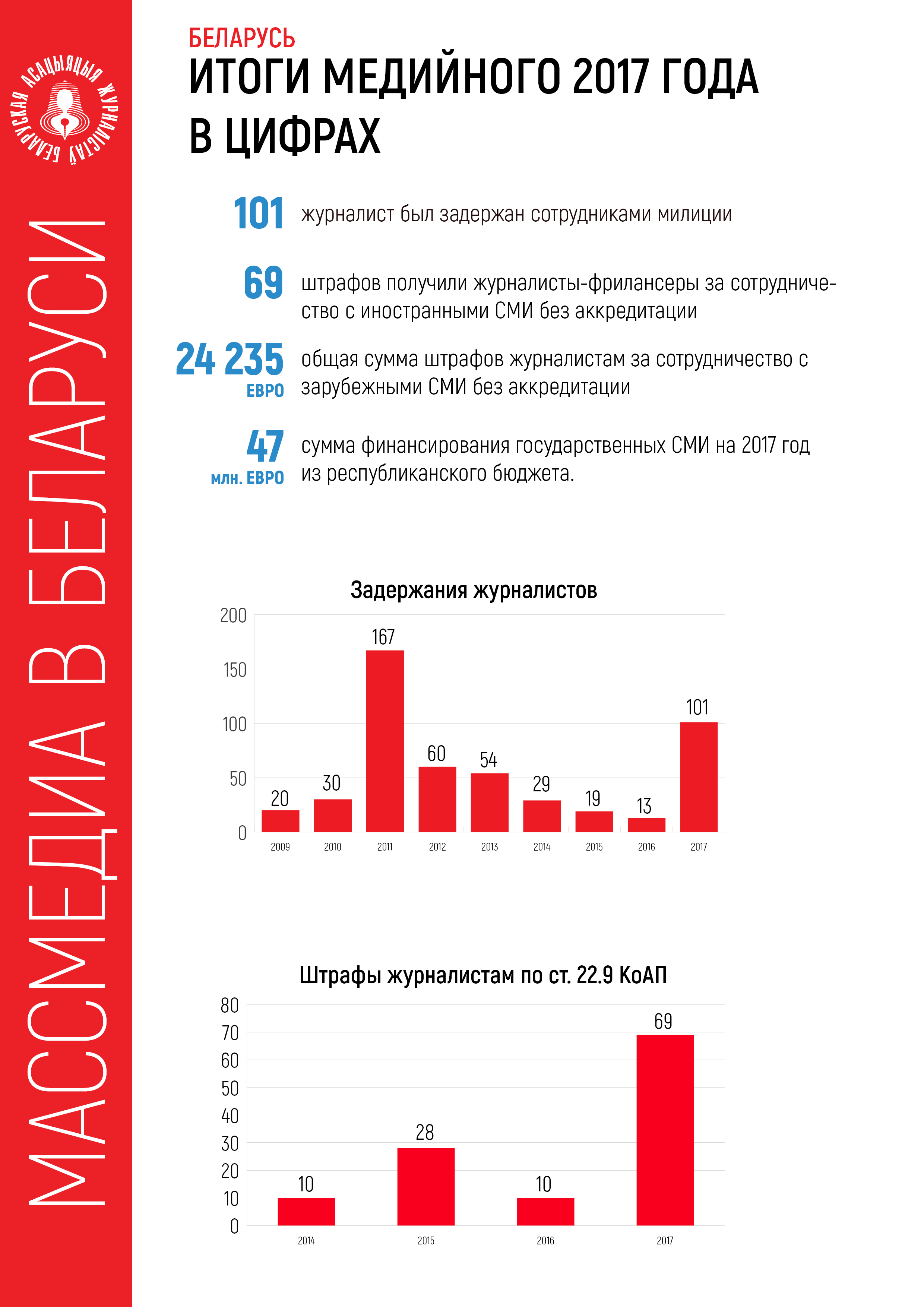 24 235 евро - общая сумма штрафов журналистам за сотрудничество с зарубежными СМИ без аккредитации;