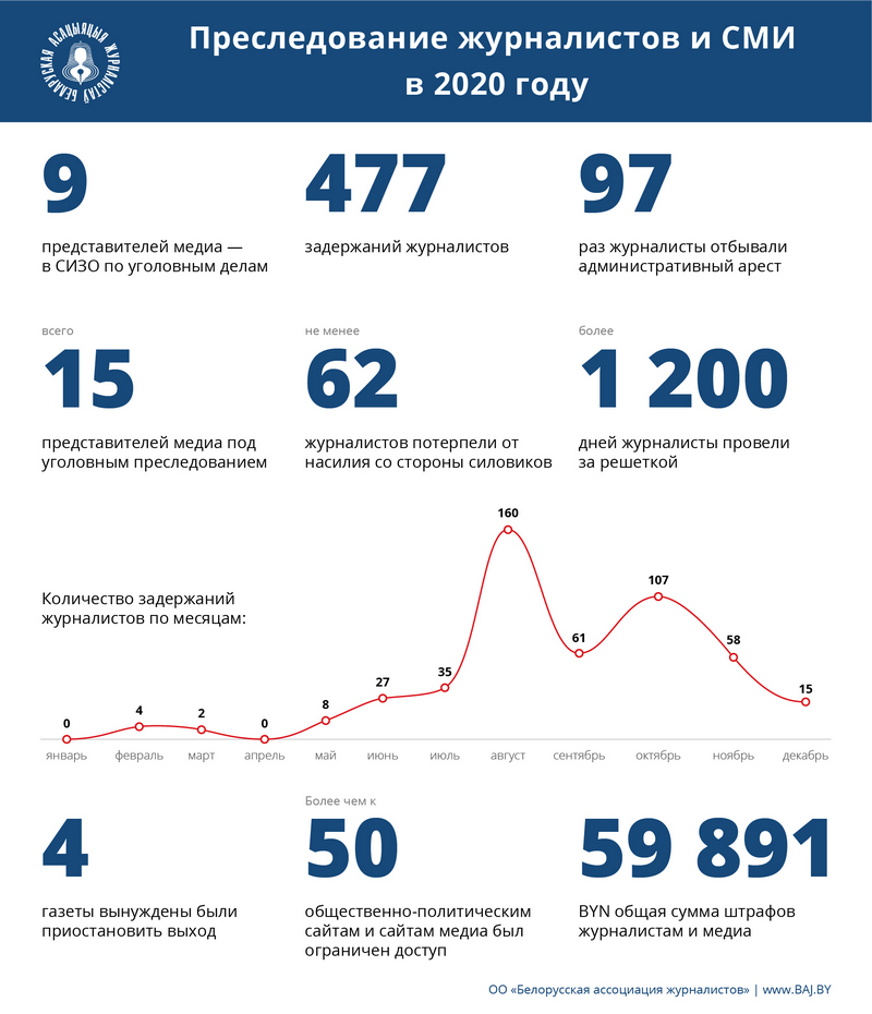 ЦИФРЫ ГОДА. Преследование журналистов и медиа в Беларуси в 2020 году